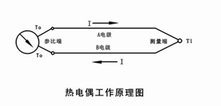 熱電偶分成兩種不同成分的導(dǎo)體,由導(dǎo)體兩端接合成回路。當(dāng)兩個(gè)結(jié)合點(diǎn)的溫度不同時(shí),會(huì)在回路中產(chǎn)生電動(dòng)勢(shì)。熱電偶就是利用這個(gè)工作原理進(jìn)行溫度測(cè)量的。熱電偶直接用作測(cè)量介質(zhì)溫度的一端叫做工作端(也稱為測(cè)量端,如圖T1處),另一端叫做冷端(也稱為補(bǔ)償端,如圖T0處);T0處接好后與補(bǔ)償導(dǎo)線連接到顯示儀表上,顯示儀表會(huì)指出熱電偶所產(chǎn)生的熱電勢(shì)。熱電偶實(shí)際上是一種能量轉(zhuǎn)換器!